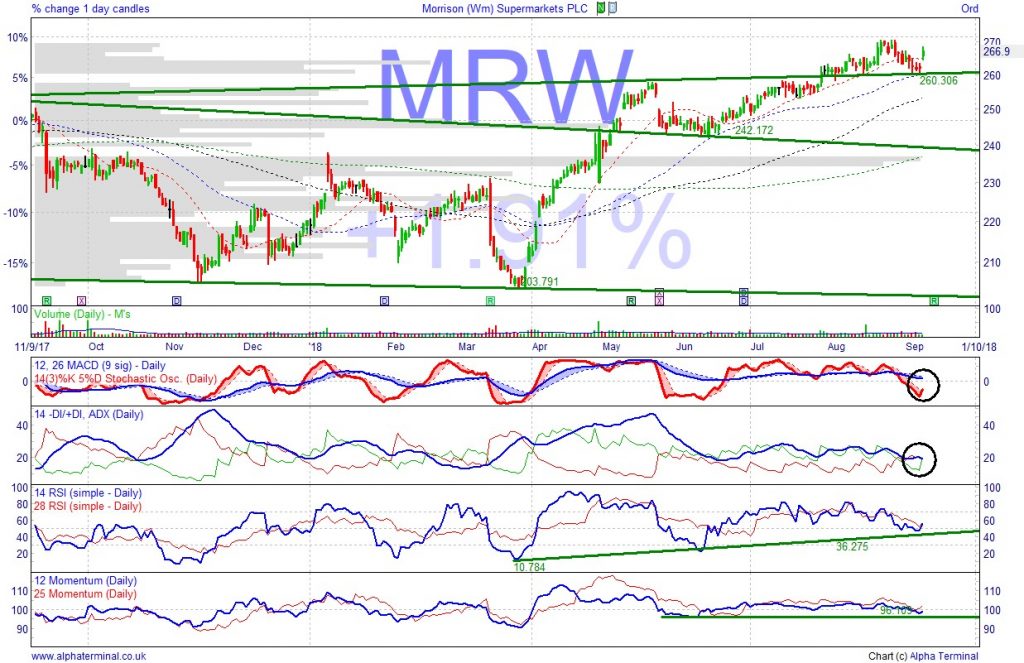 Risks to Morrisons include Brexit impact on food supplies, higher UK interest rates causing a consumer downturn, an equity market rally that favours more risky names (Banks, Miners), 2.7% dividend in bottom third of UK 100 not supportive of share price, poor Kantar monthly grocery data and, of course, broker downgrades.