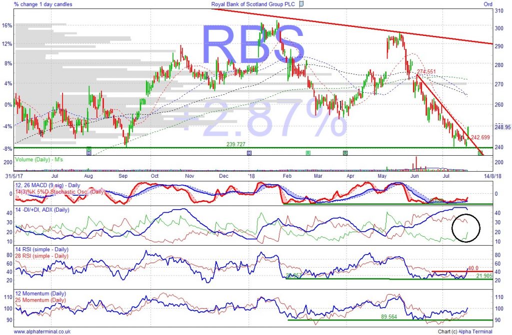 Higher bond yields are good for banks, as are rising interest rates. A UK interest rate hike by the Bank of England (BoE) could help the shares on 2 Aug. Broker Berenberg (23 Jul) says RBS offers better value that Lloyds. Broker Barclays (20 Jul) stays overweight RBS into earnings seaso based on discount to Europe peers.