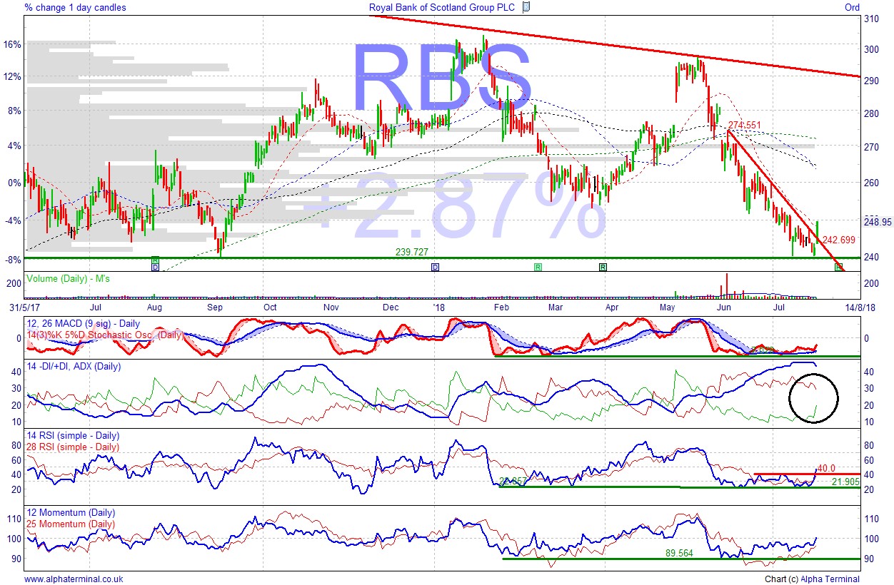 Risks to RBS shares: the UK government still selling down its bailout stake; disappointing Q2 results/outlook from it or from peers in early August; still restructuring following the financial crisis; the BoE deciding not to hike rates on 2 Aug. Dividend payments have yet to resume.