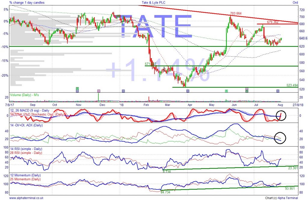 Defensive non-cyclical sector, offers investor protection. Analysts at Jefferies (13 Jun) said shares fairly priced around 670p, a level revisited in July, and which is our short-term target. It also said the company was outperforming US peers, and had ambitious 2019 guidance. Shares jumped in late May, reacting to FY results. Supportive 4-5% dividend yield.