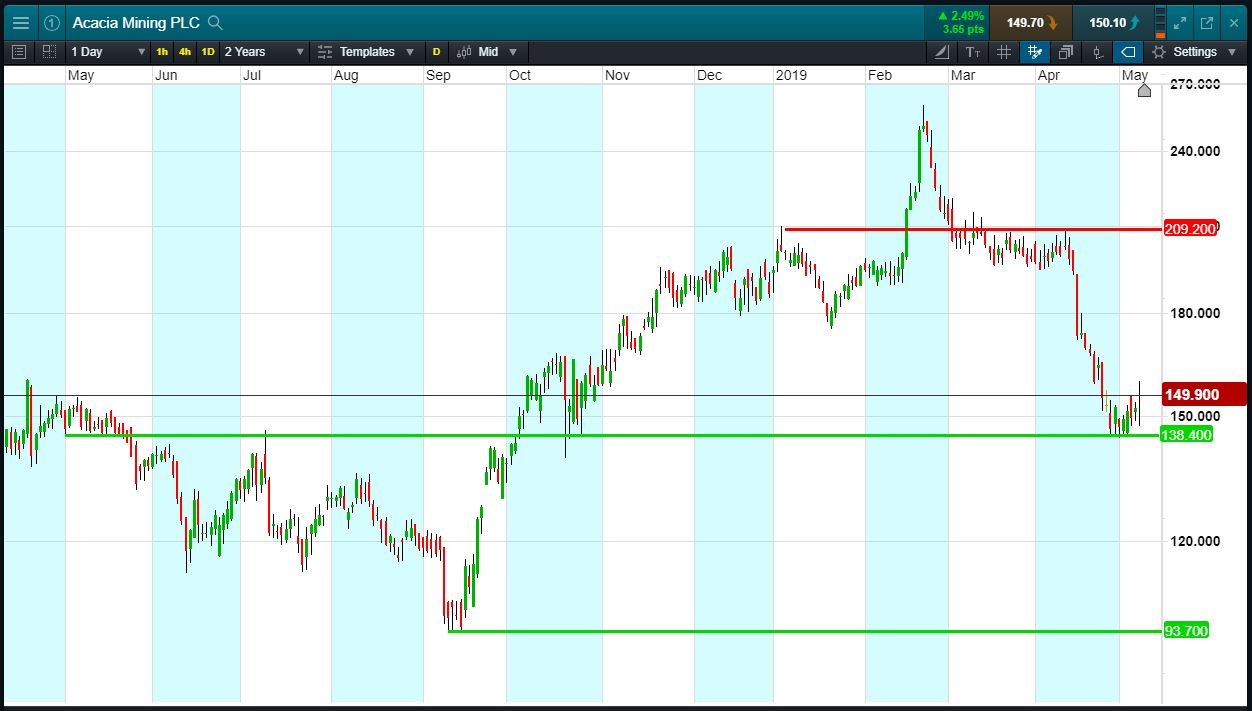 Let’s say you think that Acacia Mining shares have upside potential as result of this broker upgrade. You decide to buy exposure to £10,000 worth of Acacia Mining using a CFD, at the current price of 149p. To do this, you need £2,000.