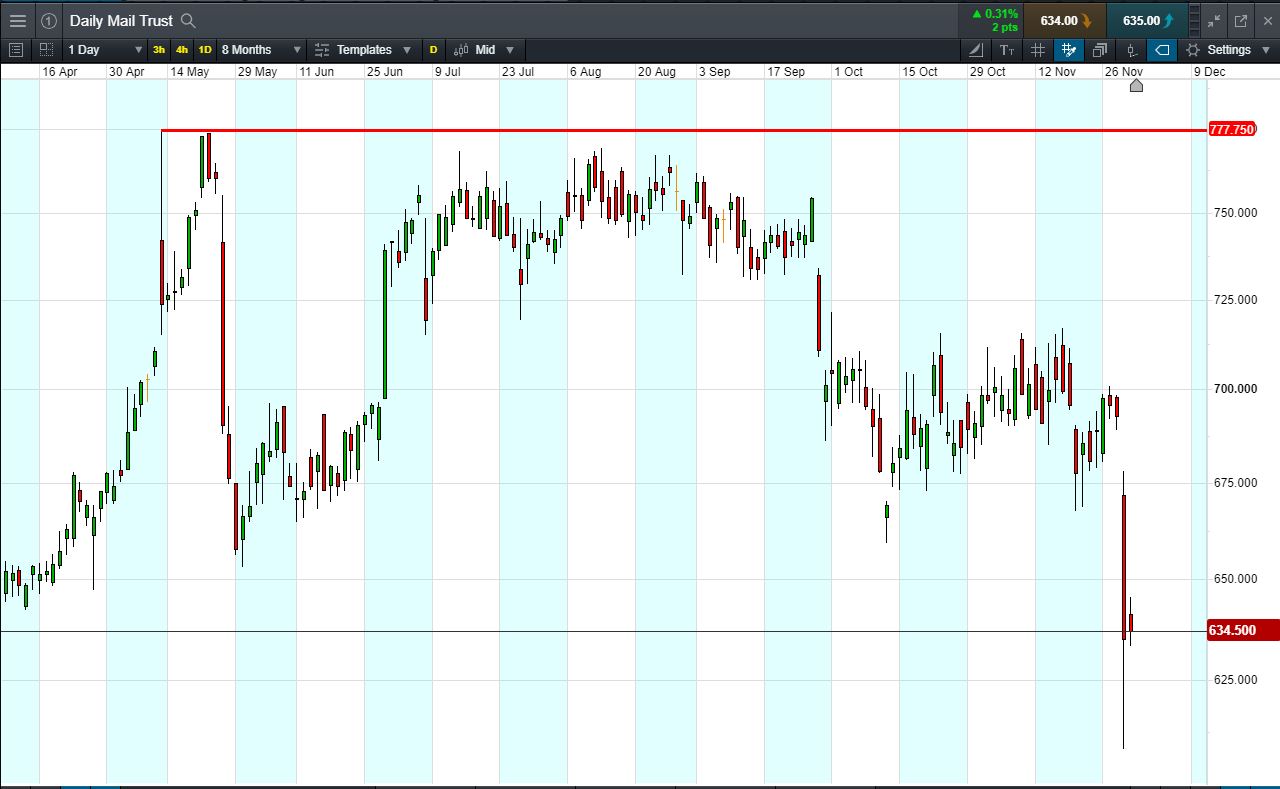 - The chart shows the Daily Mail share price since April.
