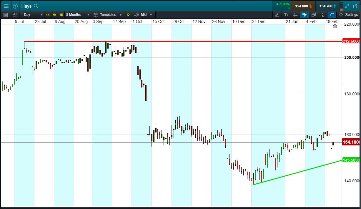 Let’s say you think that Hays shares have upside potential as result of this broker upgrade. You decide to buy exposure to £10,000 worth of Hays using a CFD, at the current price of 154p. To do this, you need £2,000.