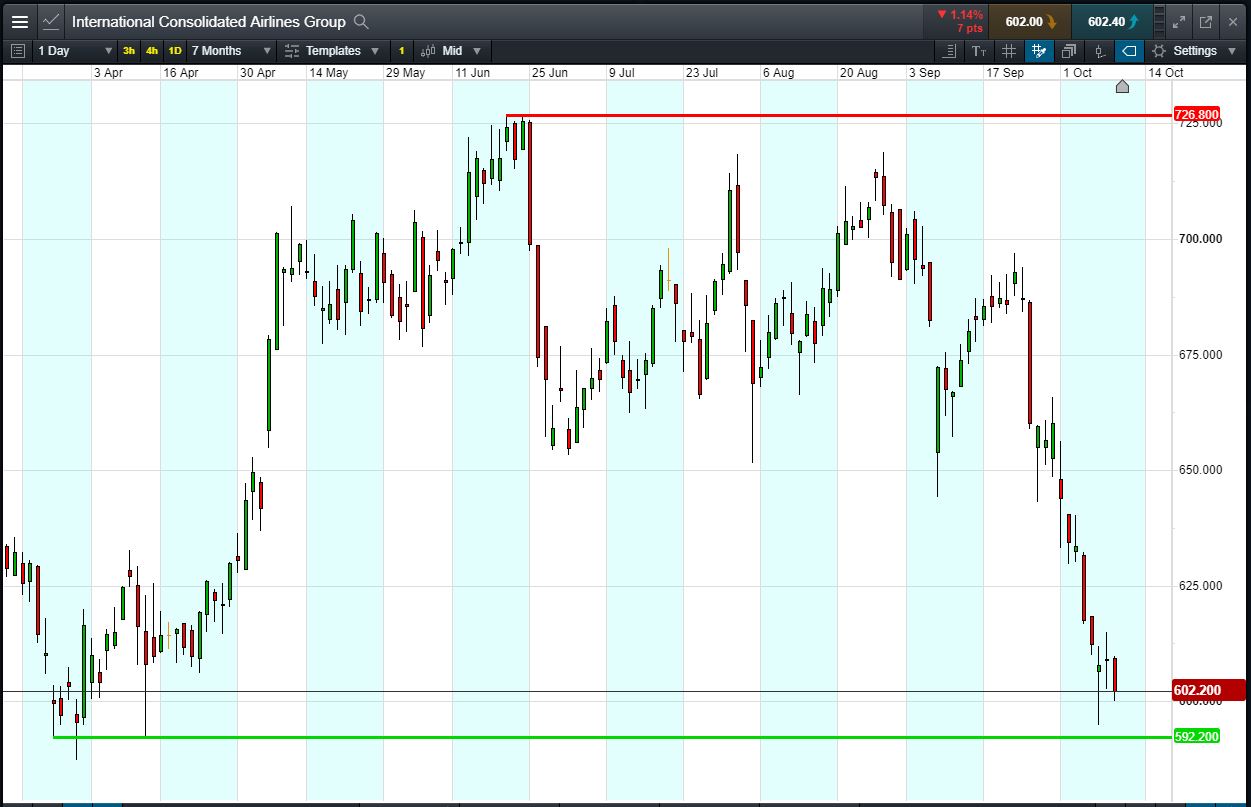 - The chart shows the International Consolidated Airlines (IAG) share price movements over the last 2 months.