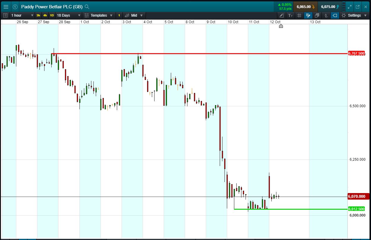 Let’s say you think that Paddy Power Betfair shares have upside potential as result of this broker upgrade. You decide to buy exposure to £10,000 worth of Paddy Power Betfair using a CFD, at the current price of 6,070p. To do this, you need £2,000.