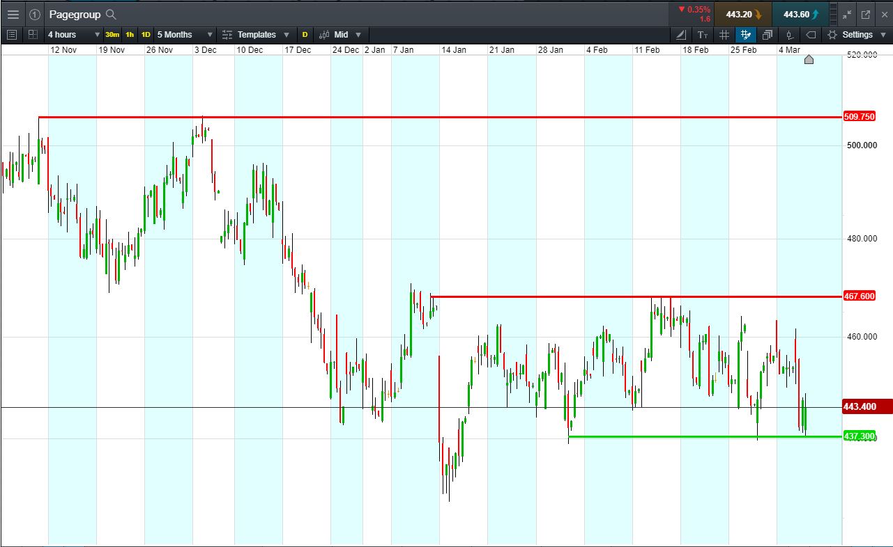 Let’s say you think that PageGroup shares have upside potential as result of this broker upgrade. You decide to buy exposure to £10,000 worth of PageGroup using a CFD, at the current price of 443p. To do this, you need £2,000.