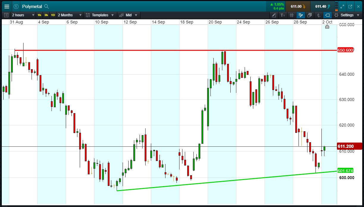 For the purpose of this example, let’s assume the Polymetal share price rises to 650p (+6.3%). Your profit would be £630 from your initial investment of £2,000.
