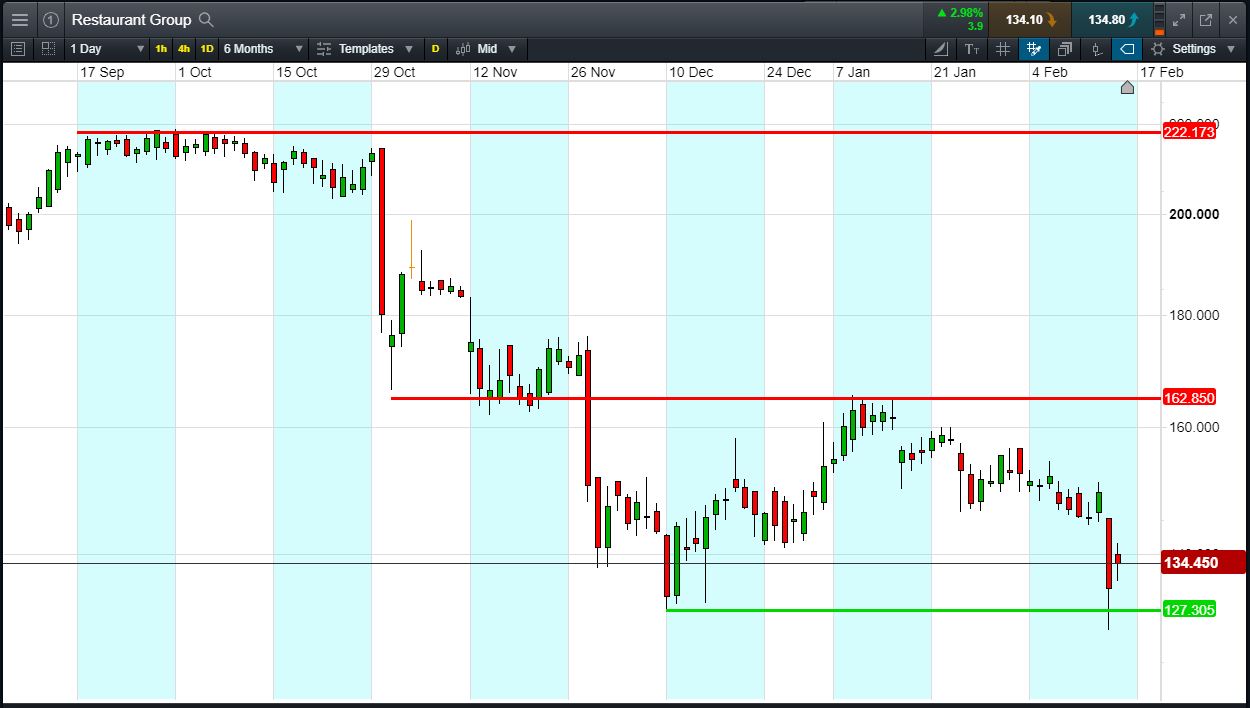 For the purpose of this example, let’s assume the Restaurant Group share price rises to 175p highs (+30%). Your profit would be £3000 from your initial investment of £2,000.