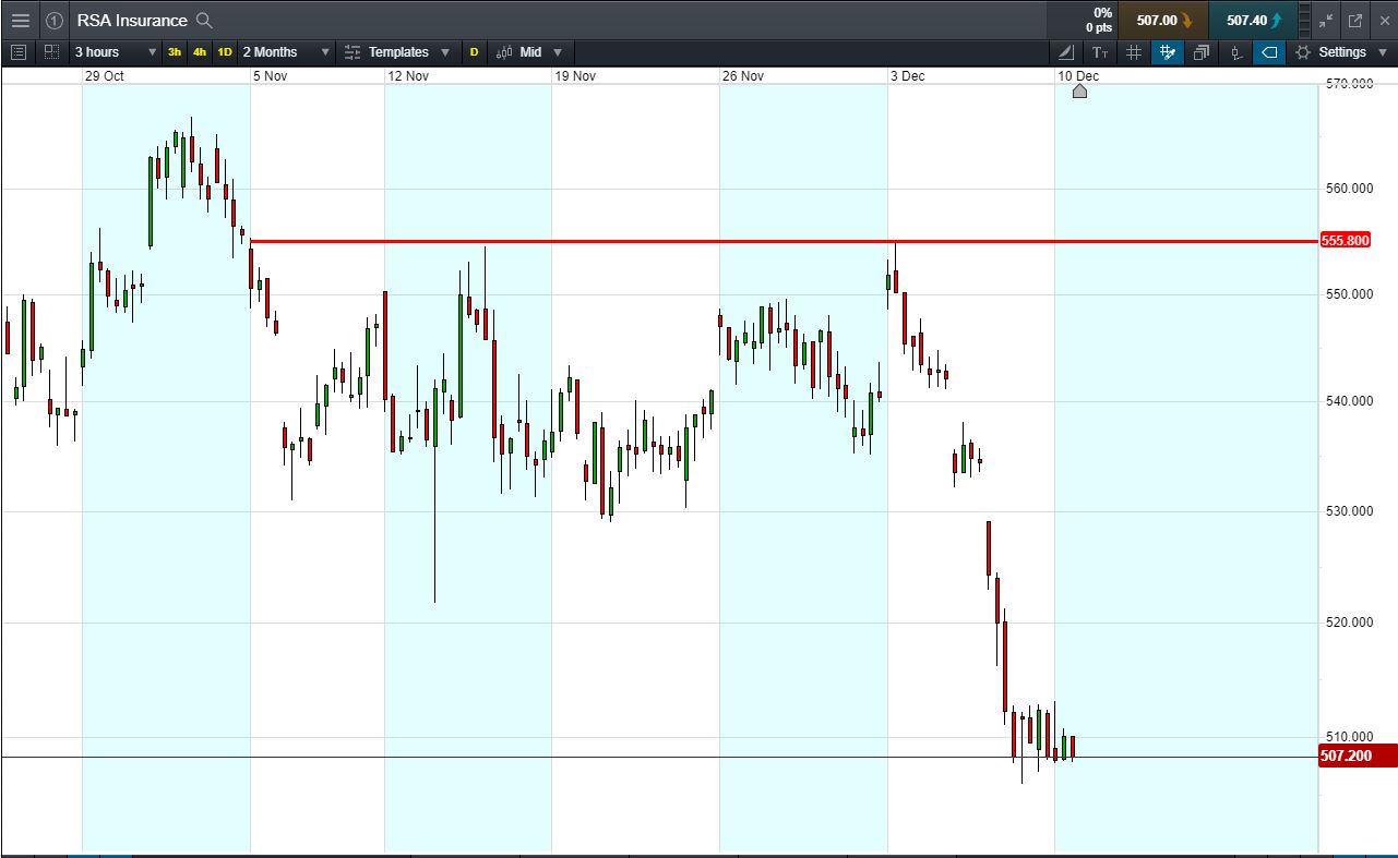 Let’s say you think that RSA Insurance shares have upside potential as result of this broker upgrade. You decide to buy exposure to £10,000 worth of RSA Insurance using a CFD, at the current price of 507p. To do this, you need £2,000.