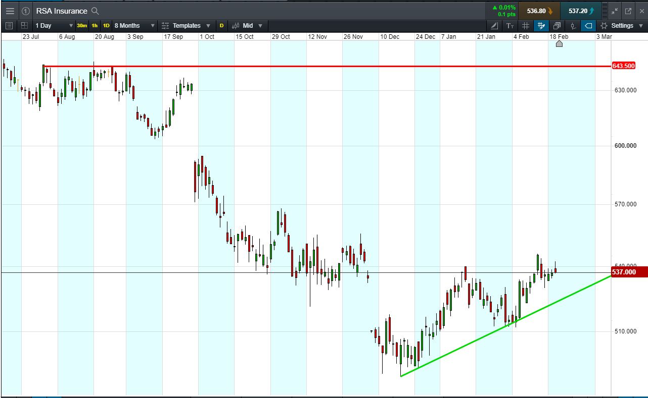 Let’s say you think that RSA shares have upside potential as result of this broker upgrade. You decide to buy exposure to £10,000 worth of RSA using a CFD, at the current price of 537p. To do this, you need £2,000.