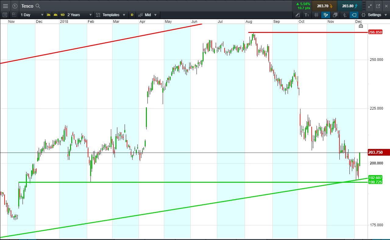 Let’s say you think that Tesco shares have upside potential as result of this broker upgrade. You decide to buy exposure to £10,000 worth of Tesco using a CFD, at the current price of 203p. To do this, you need £2,000.