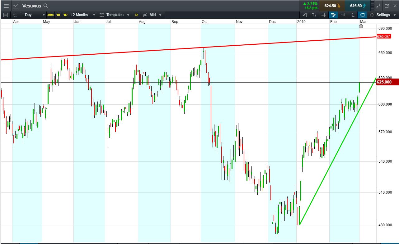 For the purpose of this example, let’s assume the Vesuvius share price rises to 666p 2018 highs (+6.5%). Your profit would be £650 from your initial investment of £2,000.