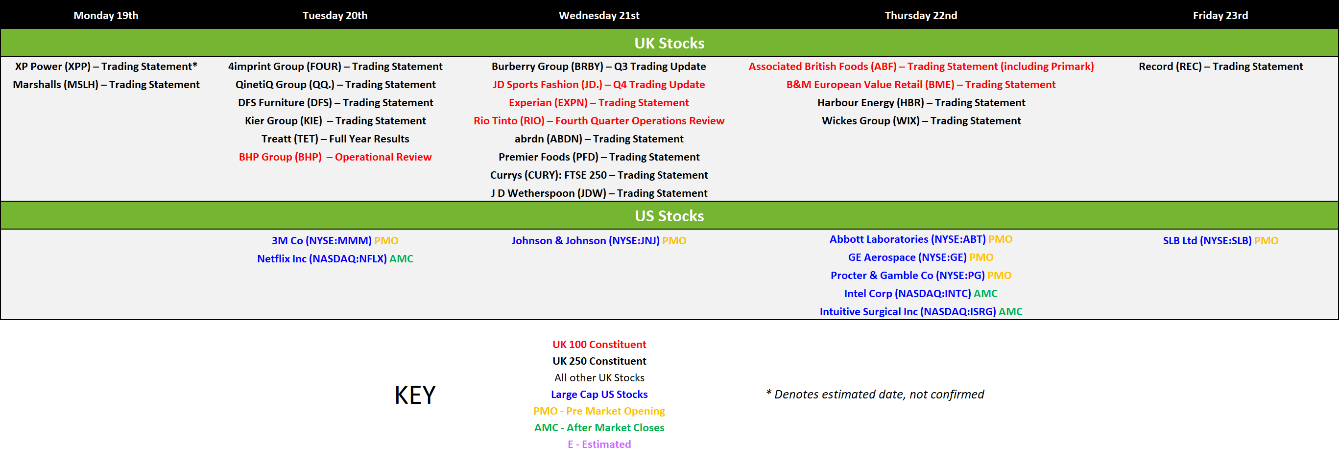 Companies Reporting - Click to enlarge