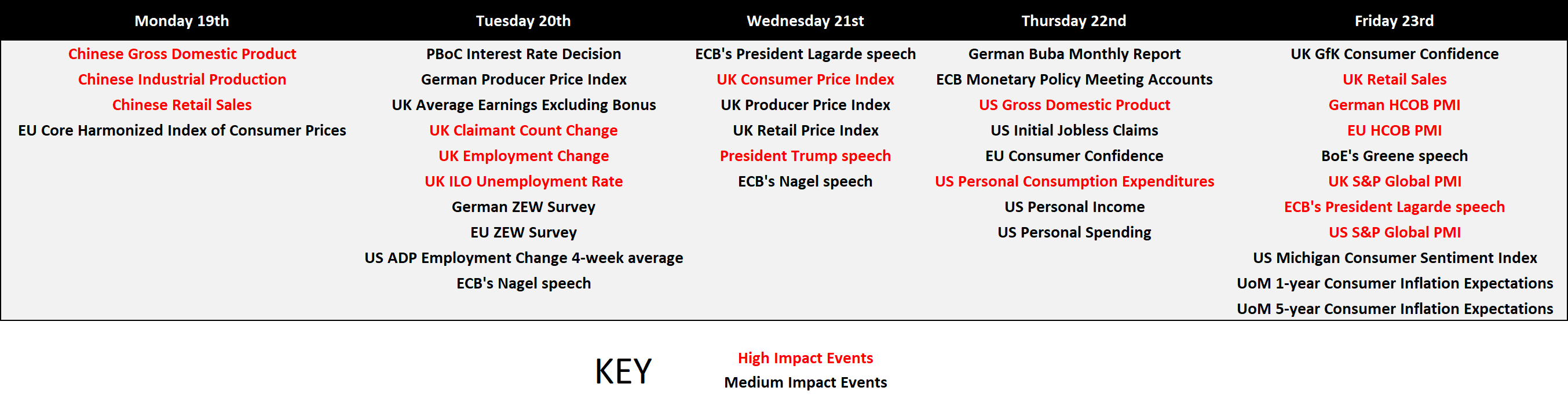 Macro-Economic Data & Key Events - Click to enlarge