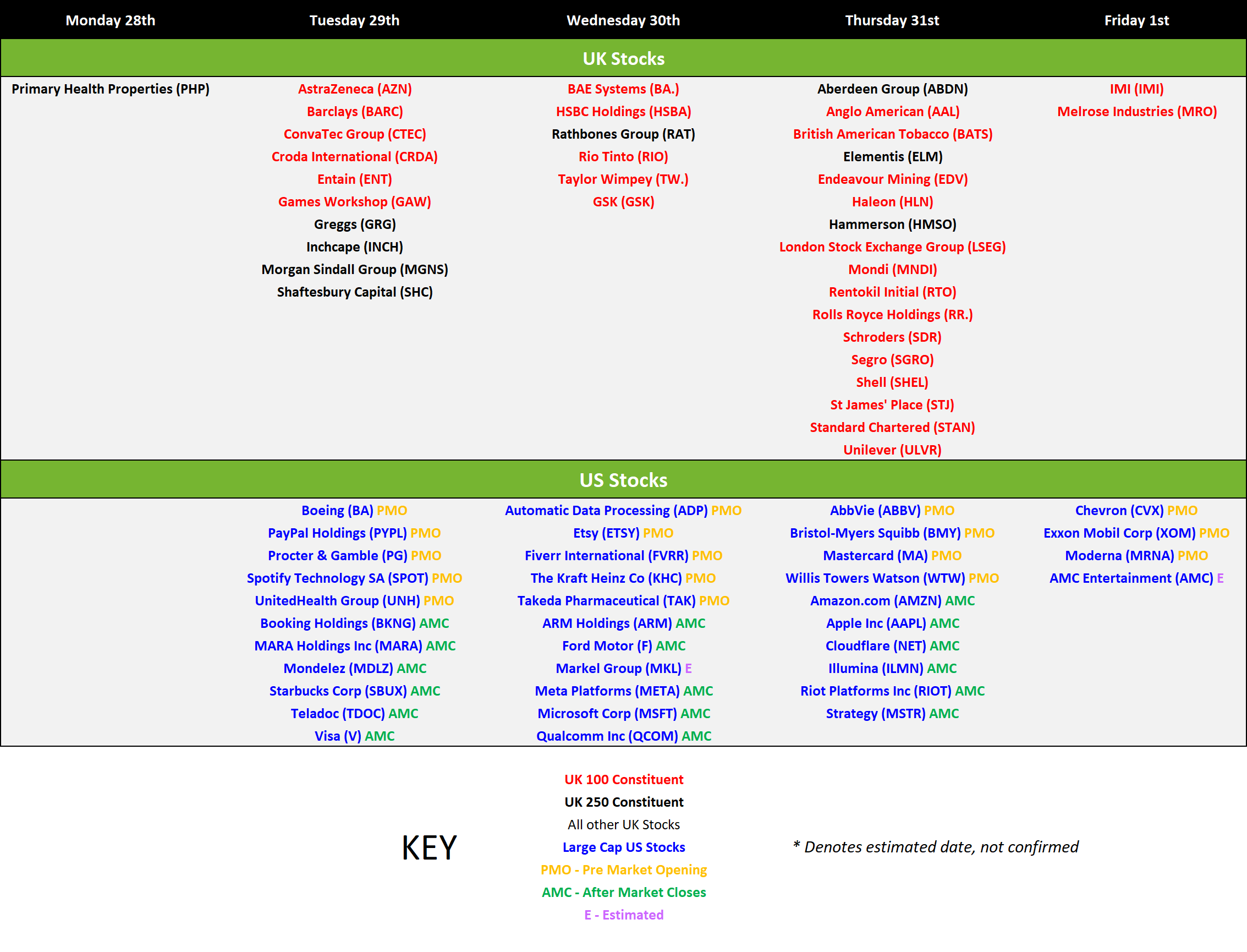 Week in Advance: Monday 28th – Friday 1st August 2025