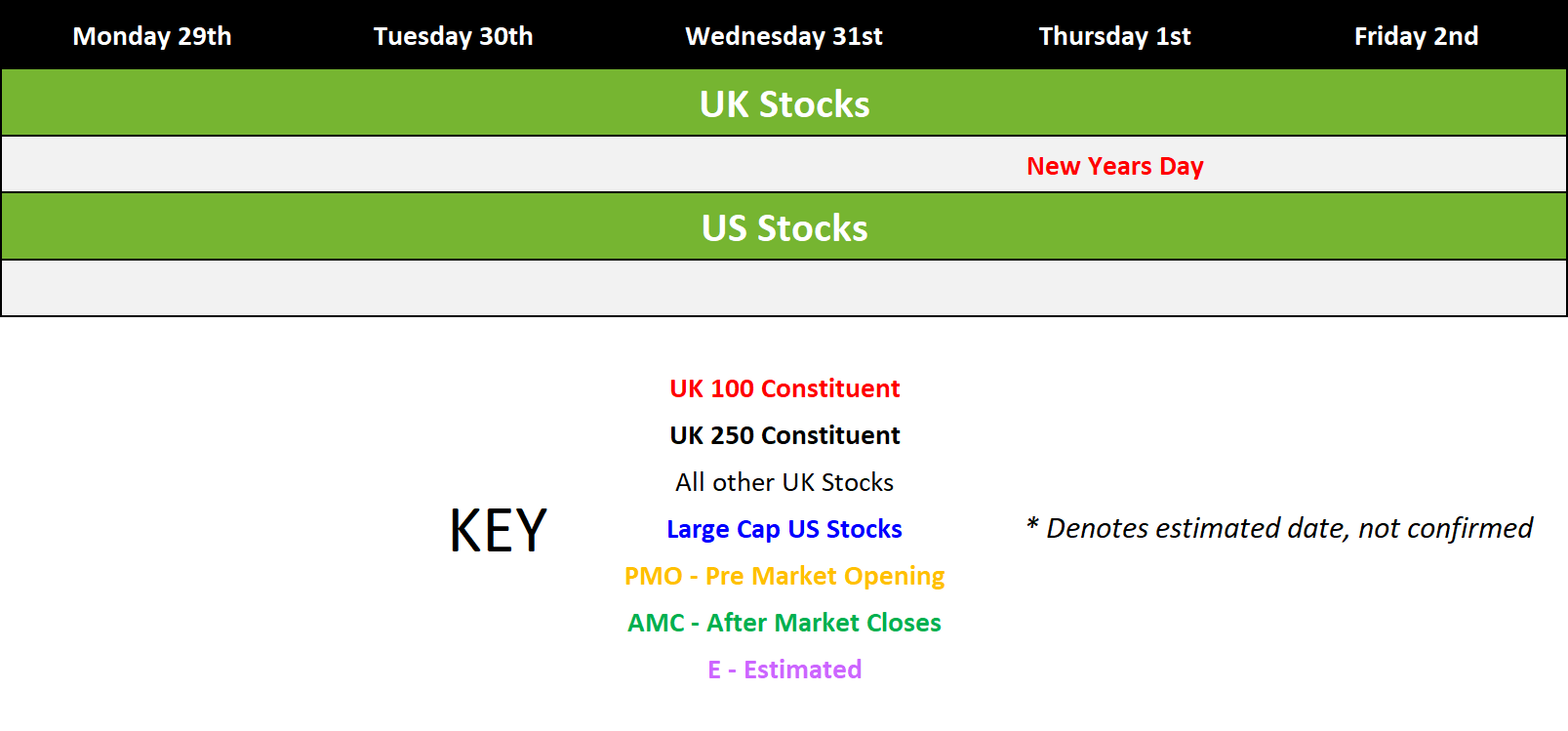 Week in Advance: Monday 29th – Friday 2nd January 2026