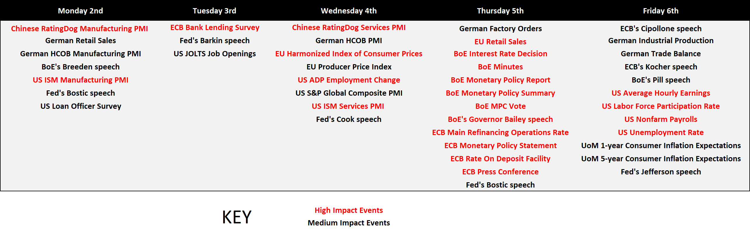 Macro-Economic Data & Key Events - Click to enlarge