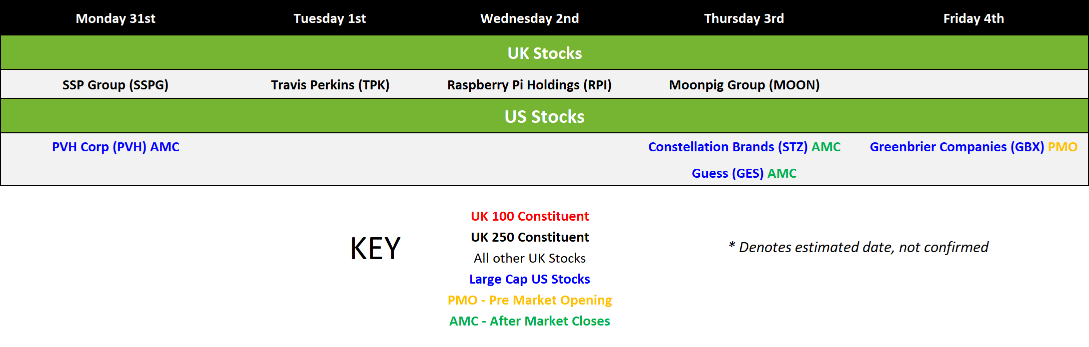 Companies Reporting - Click to enlarge