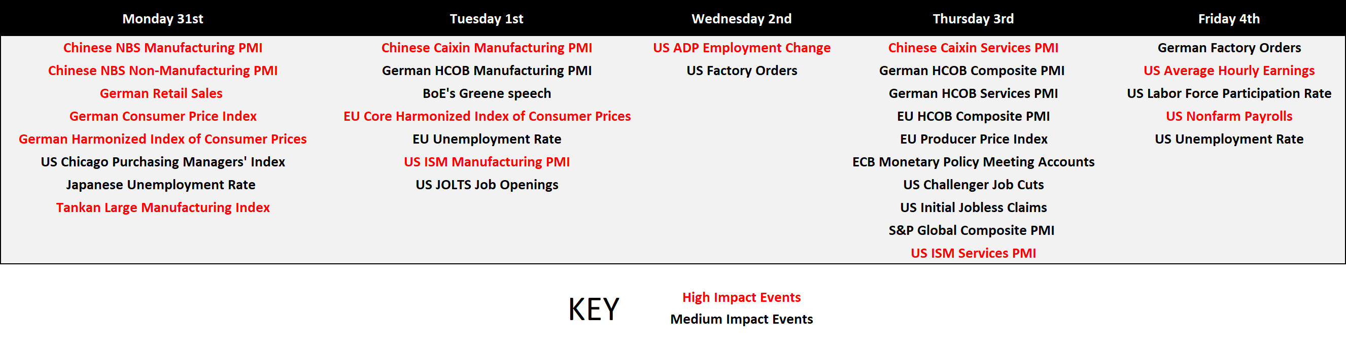 Macro-Economic Data & Key Events - Click to enlarge