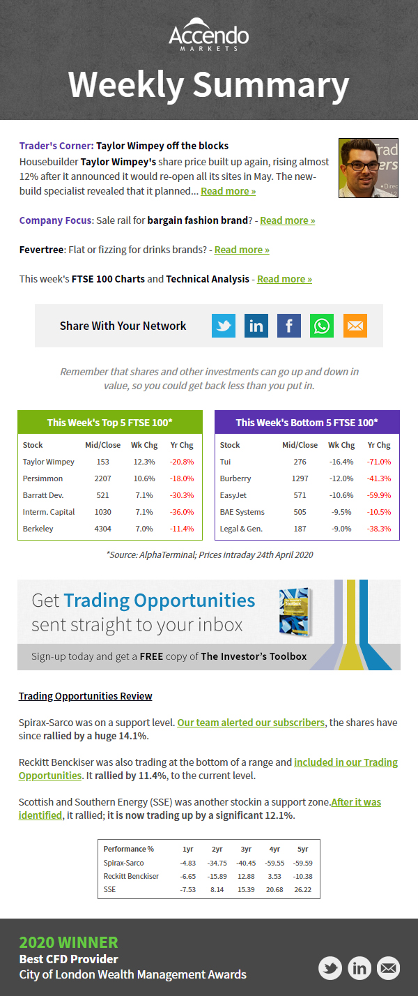 • UK 100 Leaders & Laggards – The top & bottom 5 UK 100 performers this week